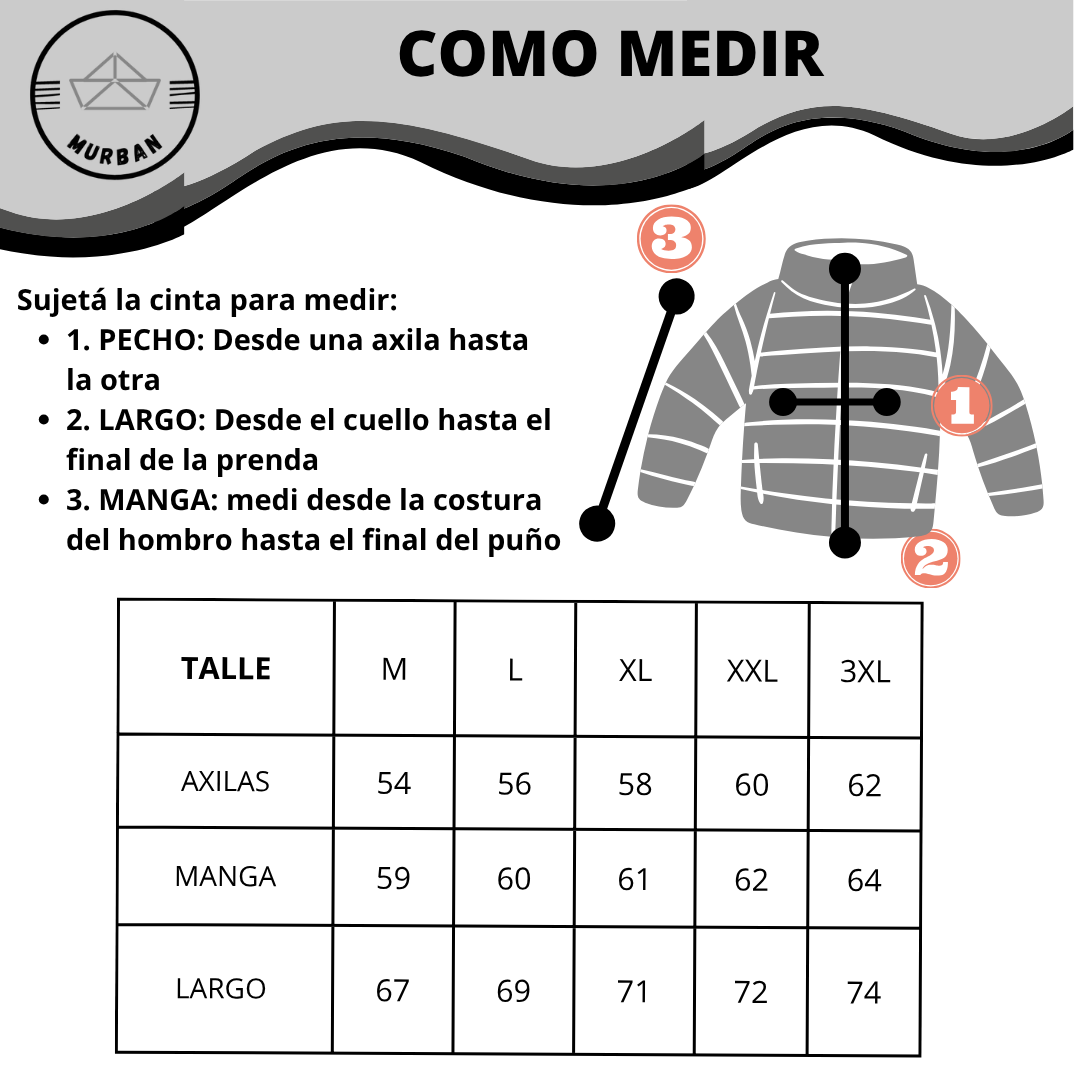 Ver GUIA DE TALLES que se encuentra especificado cada talle en CM, Tener en cuenta que las medidas expresadas son a modo orientativo y pueden ser no exactos para ciertas prendas. Fueron tomadas colocando la prenda sobre una superficie plana